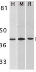 - Western Blot: H:A431; M:mouse spleen ; R: rat kidney stained with ARG54388 anti-DAP Kinase 2 antibody at 1 µg/ml dilution.