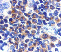 - Immunohistochemistry of DAPK2 in mouse spleen cells with DAPK2 polyclonal antibody (Cat # PAB12854) at 2 ug/mL .