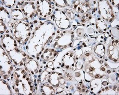 - Immunohistochemistry-Paraffin: DAP Kinase 2 Antibody (OTI1C5) [NBP2-02477] - Staining of paraffin-embedded Human Kidney tissue using anti-DAP Kinase 2 mouse monoclonal antibody.