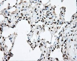 - Immunohistochemistry-Paraffin: DAP Kinase 2 Antibody (OTI1C5) [NBP2-02477] - Staining of paraffin-embedded Human lung tissue using anti-DAP Kinase 2 mouse monoclonal antibody.