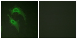- Immunofluorescence analysis of HeLa cells, using CD226/DNAM-1 (Ab-329) antibody. The picture on the right is treated with the synthesized peptide.
