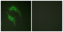 - Immunofluorescence analysis of HeLa cells, using CD226/DNAM-1 Antibody. The picture on the right is blocked with the synthesized peptide.