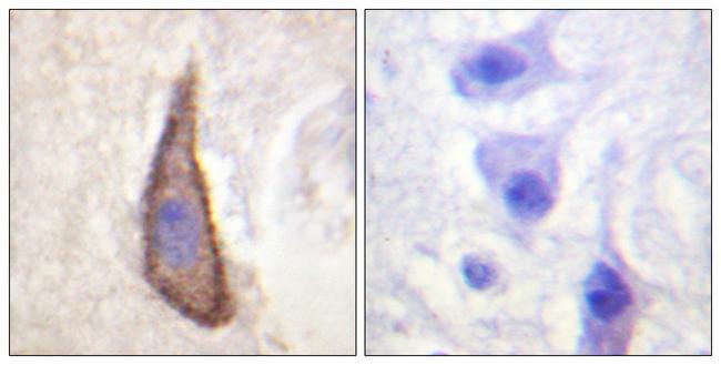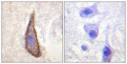 - P-peptide - + Immunohistochemistry analysis of paraffin-embedded human brain tissue using CD226/DNAM-1 (Phospho-Ser329) antibody.