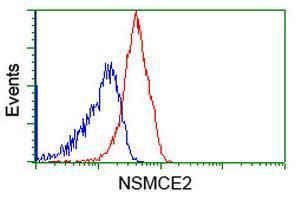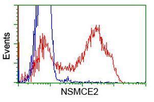 - HEK293T cells transfected with either RC207639 overexpress plasmid(Red) or empty vector control plasmid(Blue) were immunostained by anti-NSMCE2 antibody(GTX83995), and then analyzed by flow cytometry.