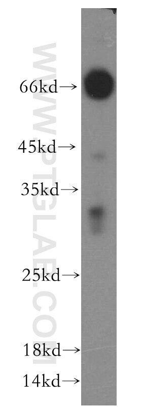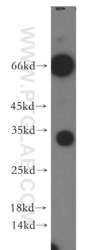 - Human spleen tissue were subjected to SDS PAGE followed by western blot with 13627-1-AP (NSMCE2 antibody) at dilution of 1:800 incubated at room temperature for 1.5 hours.