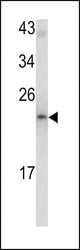 - Western blot analysis of MCT-1 antibody (N-term) (Cat. #AP6655a) in mouse bladder tissue lysates (35ug/lane). MCTS1 (arrow) was detected using the purified Pab.