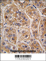 - "Formalin-fixed and paraffin-embedded human hepatocarcinoma tissue reacted with AKR1A1 antibody (C-term) (Cat.#AP2734b), which was peroxidase-conjugated to the secondary antibody, followed by DAB staining. This data demonstrates the use of this antibody for immunohistochemistry; clinical relevance has not been evaluated."