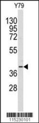 - Western blot analysis of anti-AKR1A1 Antibody (C-term) (Cat.#AP2734b) in Y79 cell line lysates (35ug/lane). AKR1A1(arrow) was detected using the purified Pab.