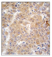 - Formalin-fixed and paraffin-embedded human hepatocarcinoma tissue reacted with AKR1A1 antibody (N-term) (Cat.#AP12361PU-N), which was peroxidase-conjugated to the secondary antibody, followed by DAB staining. This data demonstrates the use of this antibody for immunohistochemistry; clinical relevance has not been evaluated.