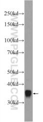 - HeLa cells were subjected to SDS PAGE followed by western blot with 15054-1-AP (AKR1A1 antibody) at dilution of 1:500 incubated at room temperature for 1.5 hours.