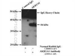 - IP result of anti-AKR1A1 (IP:15054-1-AP, 4ug; Detection:15054-1-AP 1:500) with HeLa cells lysate 3200ug.