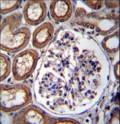 - PLS1 Antibody immunohistochemistry of formalin-fixed and paraffin-embedded human kidney tissue followed by peroxidase-conjugated secondary antibody and DAB staining.