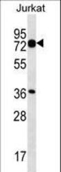 - PLS1 Antibody western blot of Jurkat cell line lysates (35 ug/lane). The PLS1 antibody detected the PLS1 protein (arrow).