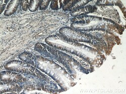 - Immunohistochemistry of paraffin-embedded human colon using 55212-1-AP (PLS1 antibody) at dilution of 1:50 (under 10x lens).