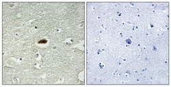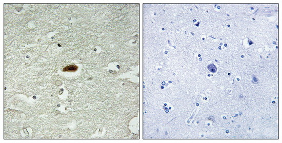 - Immunohistochemistry analysis of paraffin-embedded human brain tissue using Period Circadian Protein 2 antibody. The picture on the right is treated with the synthesized peptide.