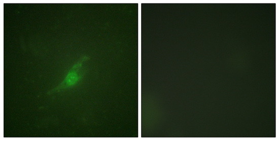 - Immunofluorescence analysis of NIH/3T3 cells, using Period Circadian Protein 2 antibody. The picture on the right is treated with the synthesized peptide.
