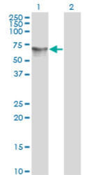 - Western blot of HDAC1 expression in transfected 293T cell line by HDAC1 monoclonal antibody.