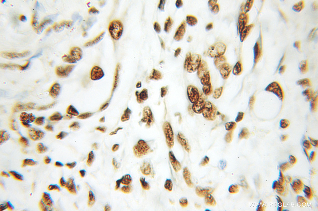 - Immunohistochemical of paraffin-embedded human pancreas cancer using 10197-1-AP(HDAC1 antibody) at dilution of 1:100 (under 10x lens)