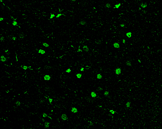 - HDAC1 antibody detects HDAC1 protein at nucleus in rat brain by immunohistochemical analysis. Sample: Paraffin-embedded rat brain. Green: HDAC1 antibody (GTX100513) diluted at 1:200. The signal was developed using goat anti-rabbit IgG antibody (Dylight488) (GTX213110-04).