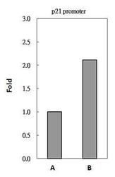 - HDAC1 antibody immunoprecipitates HDAC1 protein-DNA in ChIP experiments. ChIP Sample: 293T whole cell lysate/extract A. 5 £gg preimmune rabbit IgG B. 5 £gg of HDAC1 antibody (GTX100513) The precipitated DNA was detected by PCR with primer set targeting to p21 promoter.
