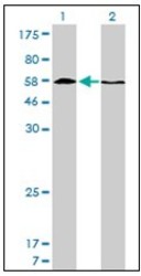 - Western Blot analysis of HDAC1 expression in transfected 293T cell line by HDAC1 monoclonal antibody.