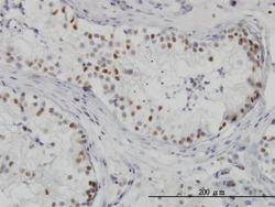 - Immunoperoxidase of monoclonal antibody to HDAC1 on formalin-fixed paraffin-embedded human testis. [antibody concentration 3 ug/ml]