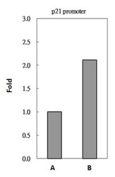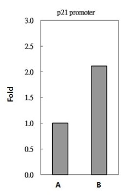 - Chromatin Immunoprecipitation: HDAC1 Antibody [NBP1-31294] - Sample: 293T whole cell lysate/extract A. 5 ug preimmune rabbit IgG, B. 5 ug of HDAC1 antibody The precipitated DNA was detected by PCR with primer set targeting to p21 promoter.