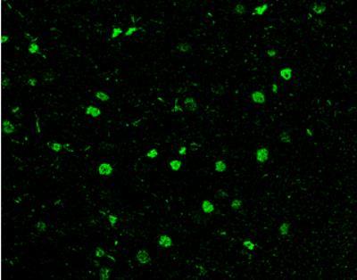 - Immunohistochemistry-Paraffin: HDAC1 Antibody [NBP1-31294] - Rat brain. Green: HDAC1 antibody diluted at 1:200. The signal was developed using goat anti-rabbit IgG antibody (Dylight488). Antigen Retrieval: Citrate buffer, pH 6.0, 15 min.