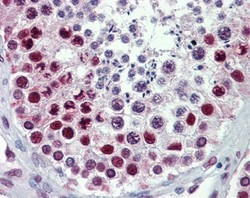 - Immunohistochemistry-Paraffin: HDAC1 Antibody [NBP1-31294] - Human testis, using HDAC1 antibody(10 ug/ml). Antigen Retrieval: Trilogy™ (EDTA based, pH 8.0) buffer, 15min.