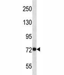 - FGFR3 antibody western blot analysis in 293 lysate. Predicted molecular weight: 87-135 kDa depending on glycosylation level.