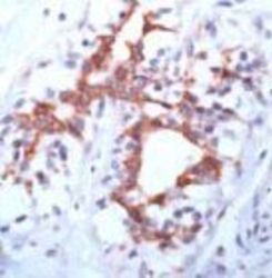 - Immunohistochemical staining of FGFR3 on formalin fixed, paraffin embedded human breast cancer with FGFR3 polyclonal antibody (Cat # PAB11649).
