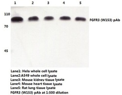 - Western blot (WB) analysis of FGFR3 antibody (Cat.-No.: AP06120PU-N) at 1/500 dilution