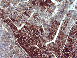 - IHC of paraffin-embedded Adenocarcinoma of Human endometrium tissue using anti-CD44 mouse monoclonal antibody. (Heat-induced epitope retrieval by 10mM citric buffer, pH6.0, 120°C for 3min).
