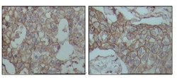 - Immunohistochemical analysis of paraffin-embedded human breast carcinoma tissues, showing membrane localization with DAB staining using CD44 mouse mAb