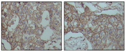 - Immunohistochemistry analysis of paraffin-embedded human breast carcinoma tissues, showing membrane localization with DAB staining using CD44 monoclonal antibody.