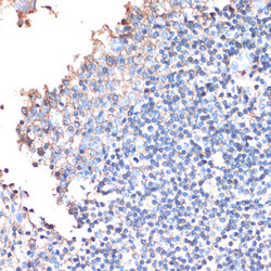 - Immunohistochemistry of paraffin-embedded human tonsil using CD44 antibody (STJ113541) at dilution of 1:200 (40x lens).