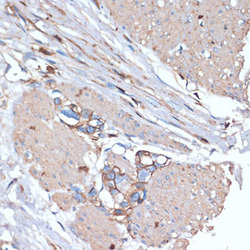 - Immunohistochemistry of paraffin-embedded human gastric cancer using CD44 antibody (STJ113541) at dilution of 1:200 (40x lens).