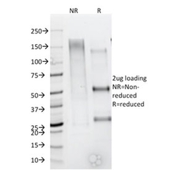 - SDS-PAGE analysis of purified, BSA-free recombinant CD44 antibody (clone rHCAM/918) as confirmation of integrity and purity.