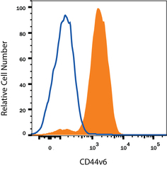 - Protein A or G purified from ascites. Detects human CD44v6 in Western blots. By flow cytometry analysis using a panel of CD44-transfected COS cells (9), monoclonal antibody clone 2F10 was deduced to be specific for human CD44 protein isoforms containing variant exon 6 (CD44v6).