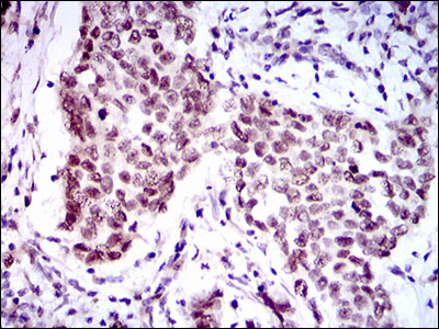 - IHC of paraffin-embedded breast cancer tissues using FOXP1 mouse monoclonal antibody with DAB staining.