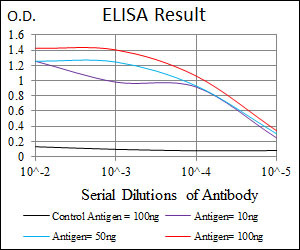 - Red: Control Antigen (100ng); Purple: Antigen (10ng); Green: Antigen (50ng); Blue: Antigen (100ng);