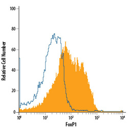 - Detection of FoxP1 in MCF-7 Human Cell Line by Flow Cytometry. MCF-7 human breast cancer cell line was stained with Mouse Anti-Human FoxP1 Monoclonal Antibody (Catalog # MAB45341, filled histogram) or isotype control antibody (Catalog # MAB002, open histogram), followed by Allophycocyanin-conjugated Anti-Mouse IgG Secondary Antibody (Catalog # F0101B). To facilitate intracellular staining, cells were fixed with 4% paraformaldehyde and permeabilized with methanol.