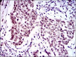 - IHC-P analysis of breast cancer tissues using FOXP1 antibody [6E4].