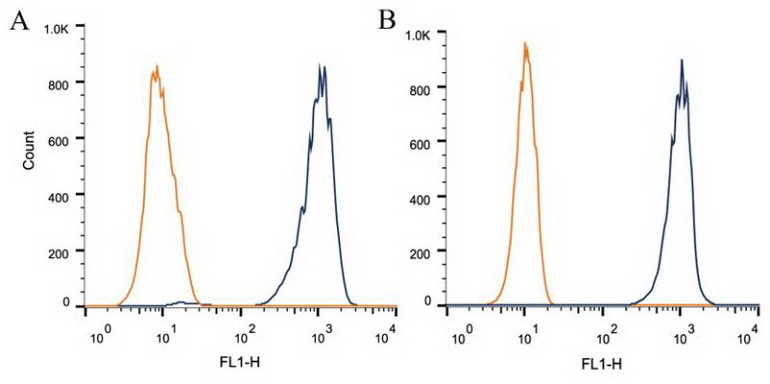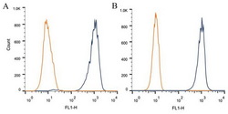 - Flow Cytometry: FOXP1 Antibody (JC12) [TA336483] - Intracellular flow cytometric staining of 1 x 10^6 CHO (A) and HeLa (B) cells using FOXP1 antibody (dark blue). Isotype control shown in orange. An antibody concentration of 1 ug/1x10^6 cells was used.