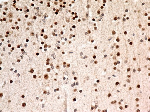 - Immunohistochemistry-Paraffin: FOXP1 Antibody (JC12) [TA336483] - IHC analysis of formalin-fixed paraffin-embedded tissue section of human normal brain using mouse monoclonal FOXP1 antibody (clone JC12) at 5 ug/ml concentration. The cells in the brain tis