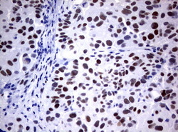 - Immunohistochemical staining of paraffin-embedded Carcinoma of Human bladder tissue using anti-FOXP1 mouse monoclonal antibody. (UM800020; heat-induced epitope retrieval by 1 mM EDTA in 10mM Tris, pH8.0, 120C for 3min)