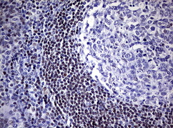 - Immunohistochemical staining of paraffin-embedded Human tonsil using anti-FOXP1 mouse monoclonal antibody. (UM800020; heat-induced epitope retrieval by 1 mM EDTA in 10mM Tris, pH8.0, 120C for 3min)