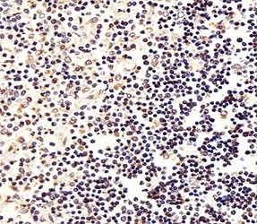 - IHC analysis of FFPE human thymus section using FOXP1 antibody; Ab was diluted at 1:25.
