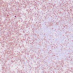 - Human tonsil stained with anti-FoxP1 antibody using peroxidase-conjugate and DAB chromogen. Note the nuclear staining of follicular and mantle B-cells.